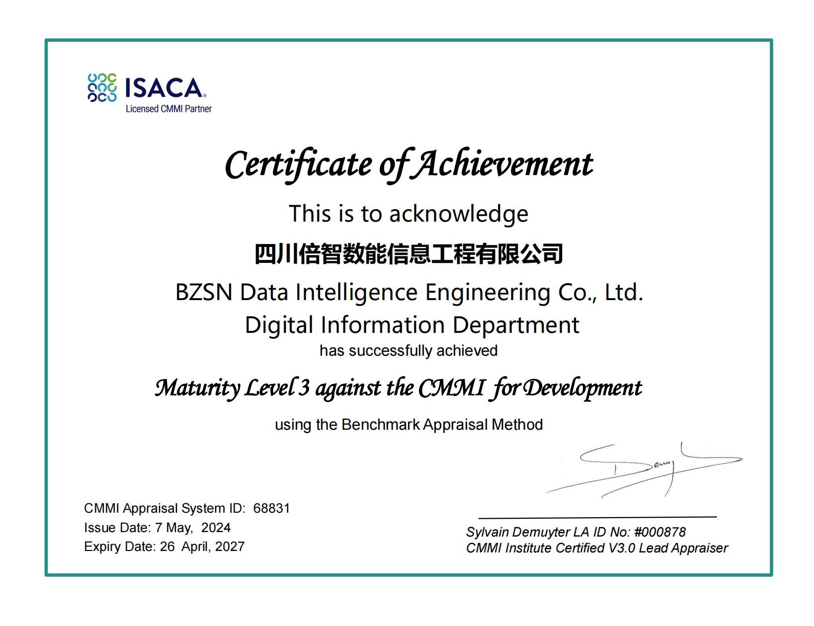 倍能公司再通過(guò)CMMI-3級認證